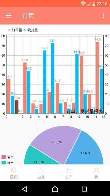 其中主要操作功能如:订单管理、收发漂染管理、库存管理、检验日报管理等都在对应的手机APP的功能实现。